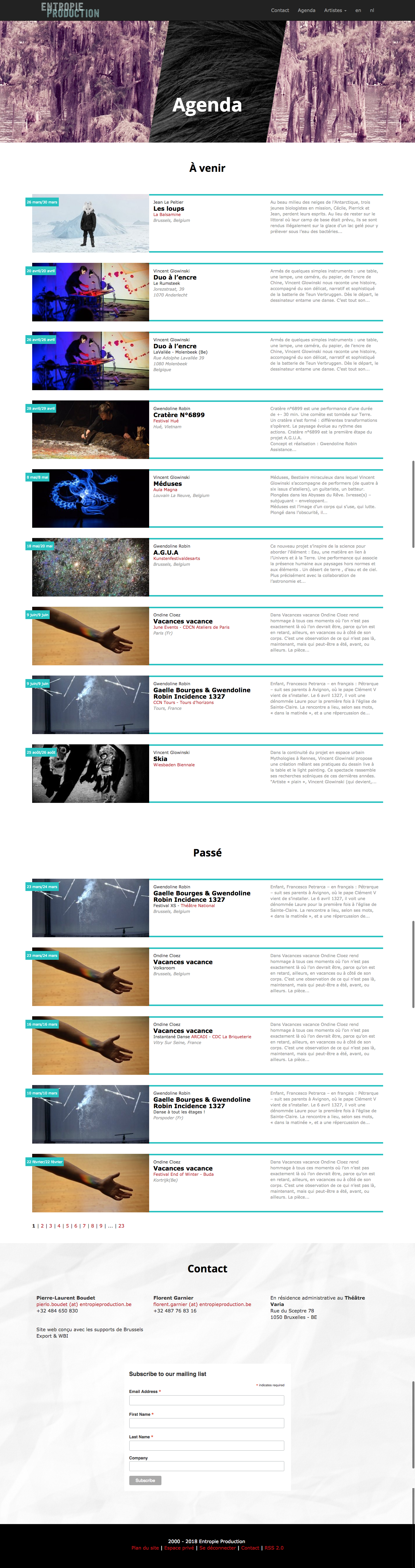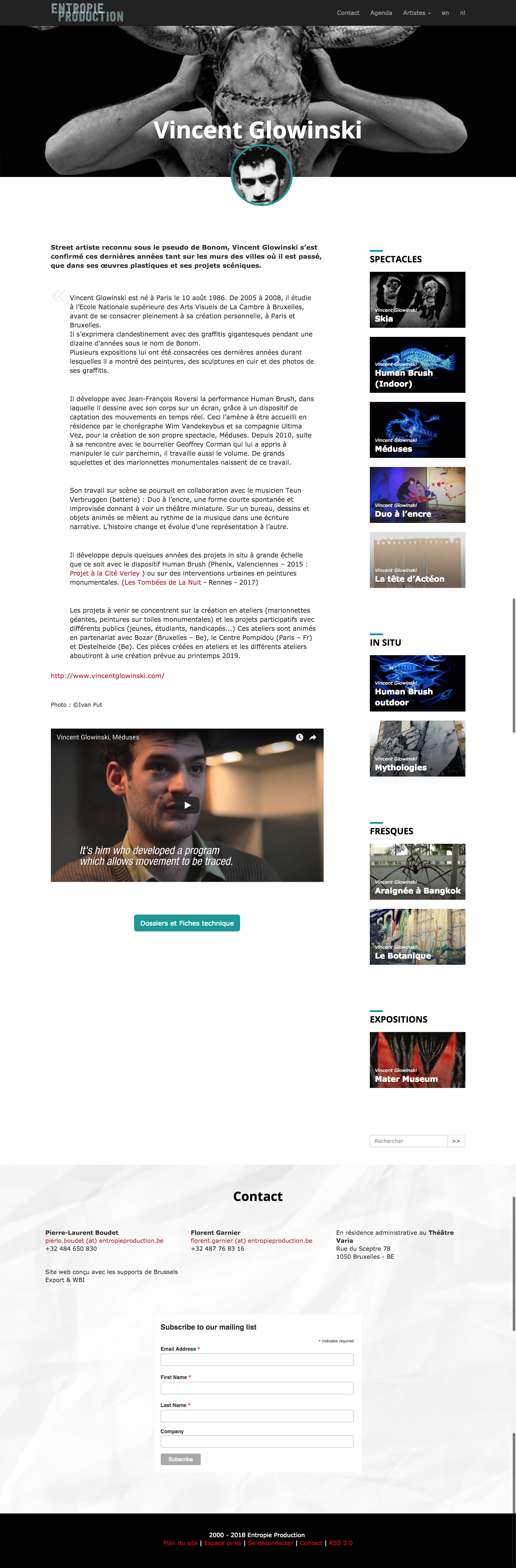 entropieproduction.be A production office developing artistic projects Design et développement