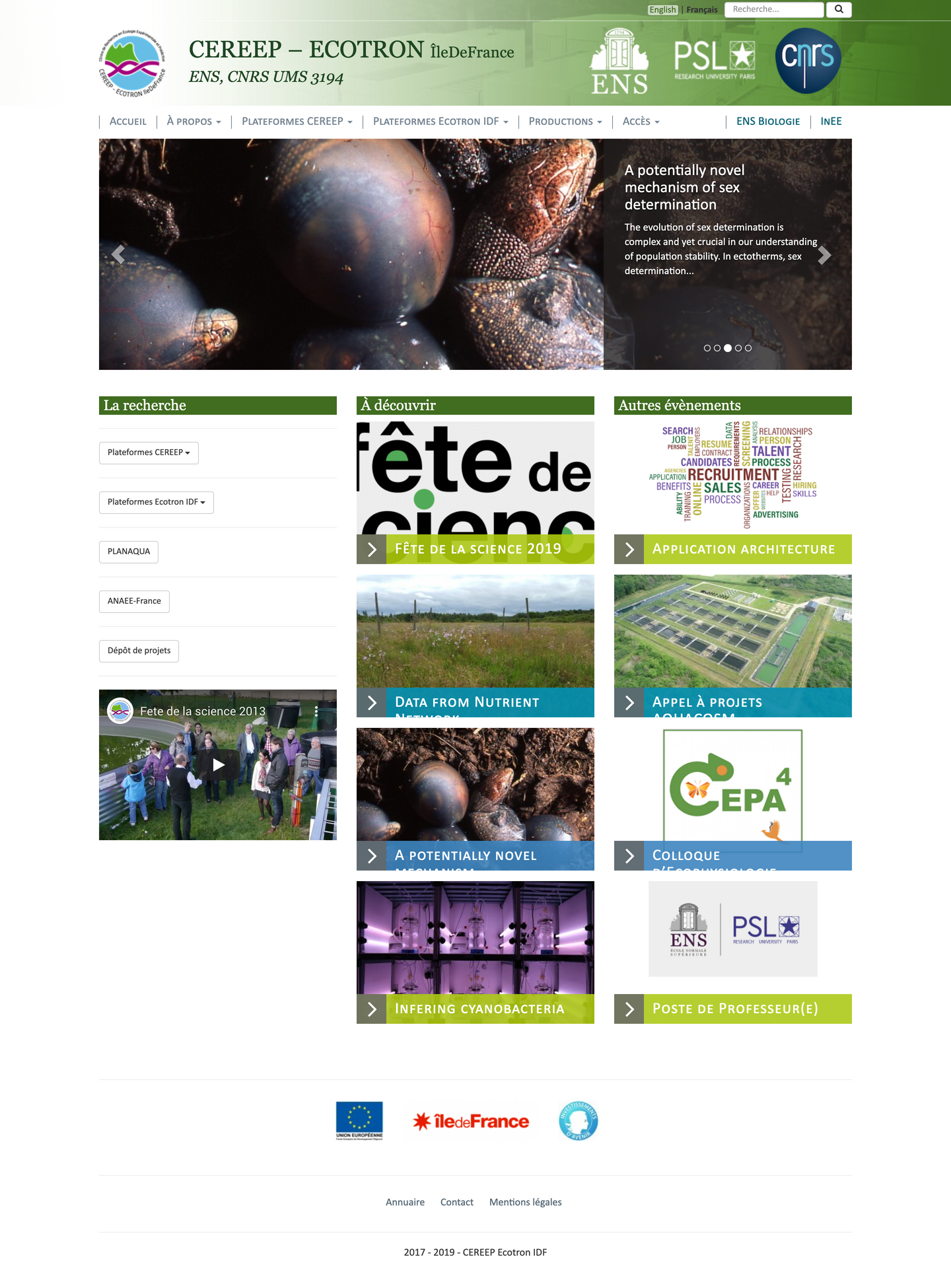 Création d’une batterie de sites pour le département de biologie de l’ENS de Paris (Ulm).