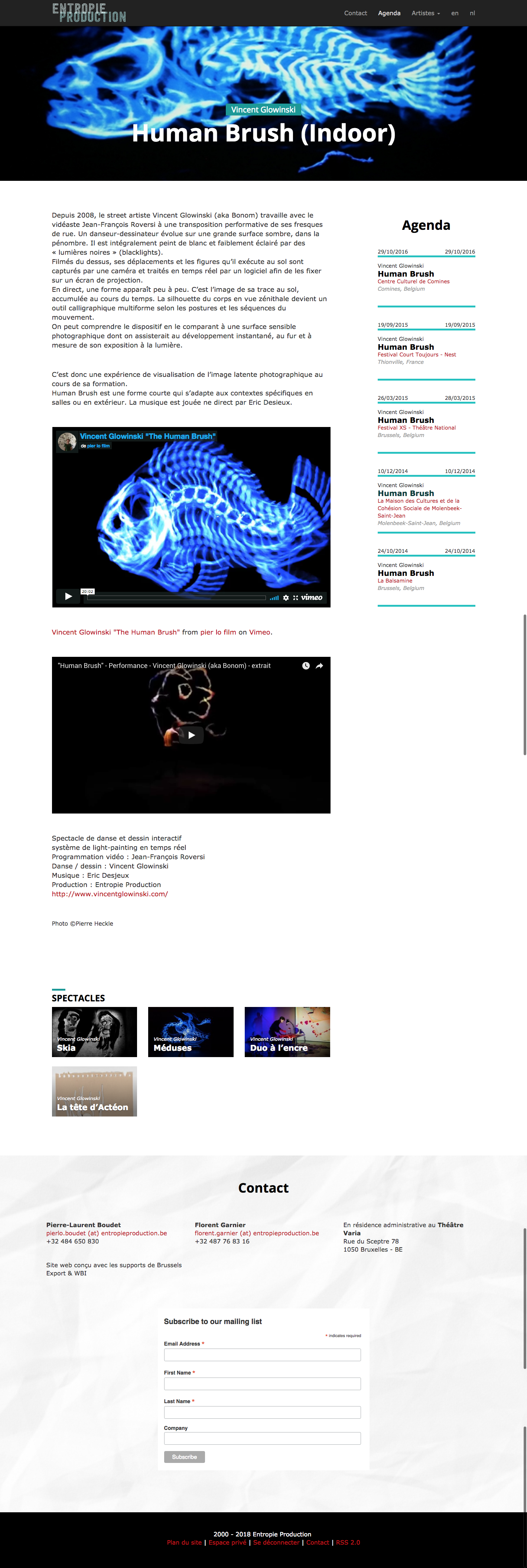 entropieproduction.be A production office developing artistic projects Design et développement